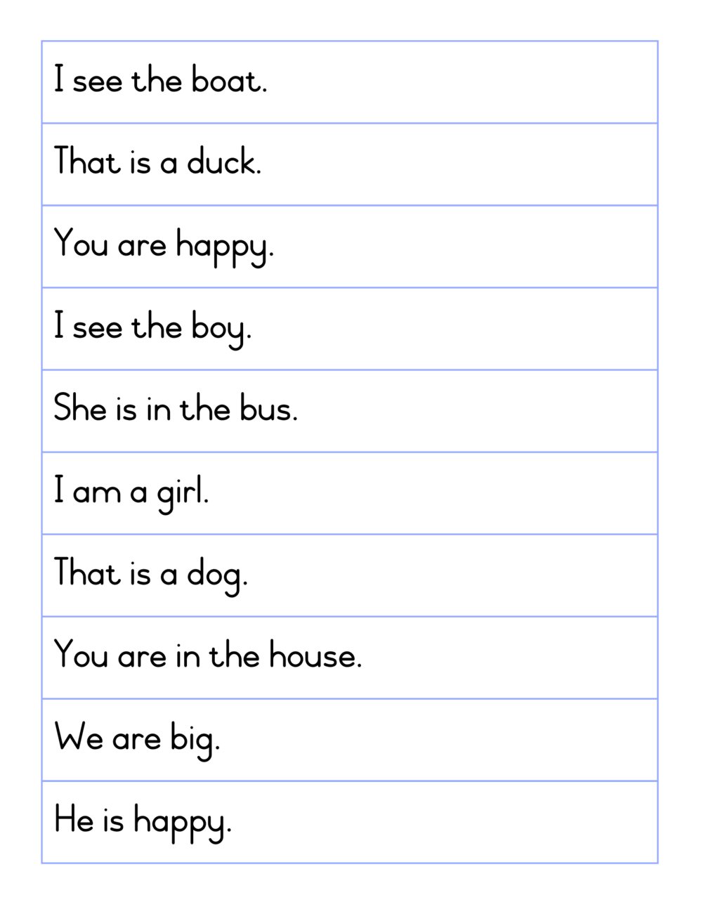 Grade 1 Reading Simple Sentences